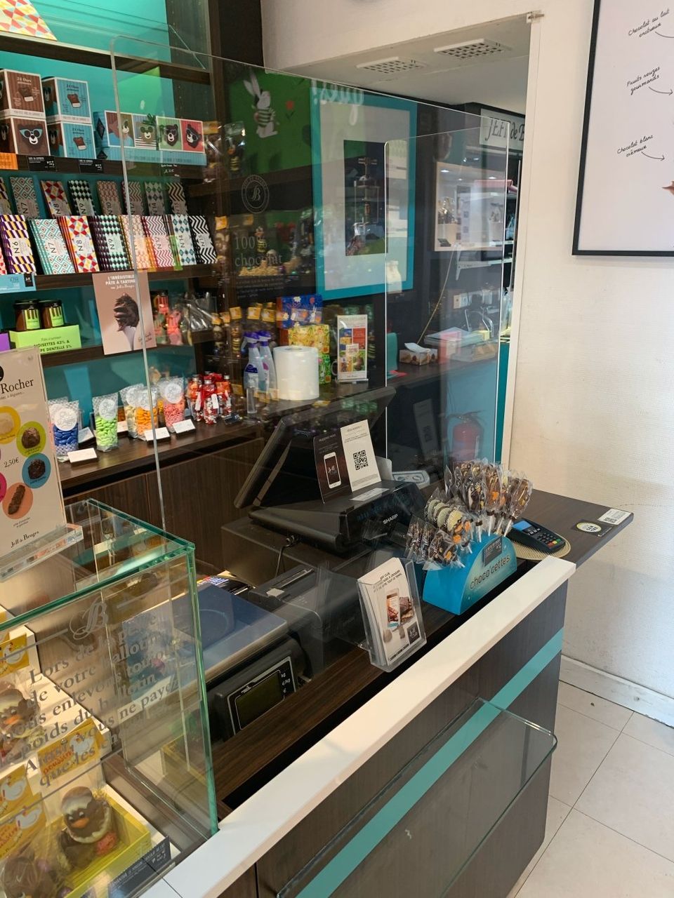 Nous avons fabriqué sur-mesure des protections de comptoirs pour deux magasins "Jeff de Bruges"